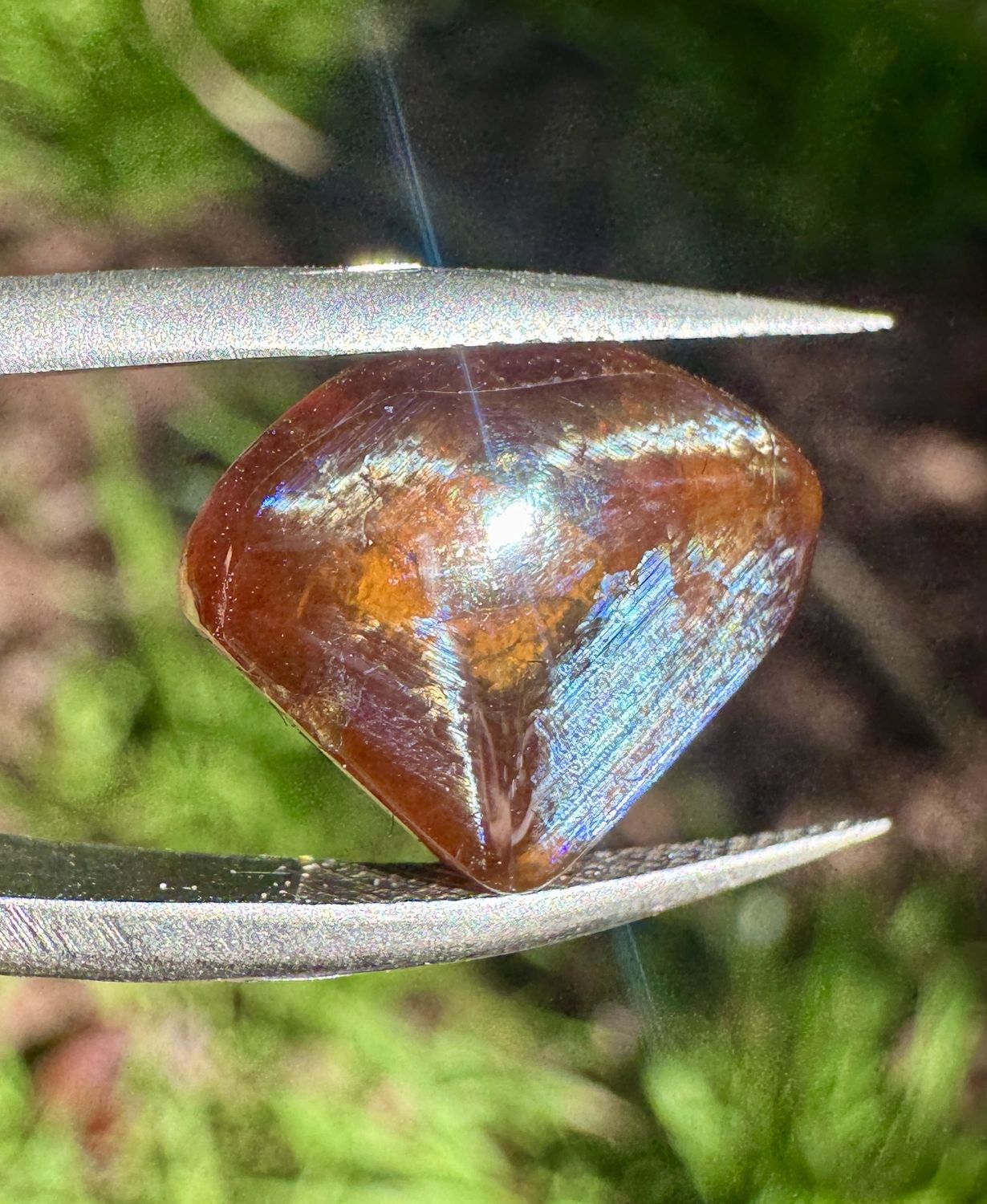 Specimens of this quality, especially from San Pedro Mountain, are becoming increasingly difficult to source, particularly with such gemmy clarity and uniquely vibrant color diffraction. A collector’s dream and a lapidary's triumph, this stone bridges the aesthetic of celestial mystique with the earthy alchemy of garnet’s more obscure optical gifts.